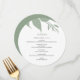 Este modelo de cardápio moderno faz parte da Suíte de Casamento de Luxo de Do Diga A Belle. O único design redondo apresenta folhas verdes botânicas. Personalize-os com itens de menu, nomes e data do evento. Perfeito para casamentos, um chá de panela, jantas de ensaio, festas de noivado ou o que você quiser. Uma escolha botânica para comemorações rústicas. Para ver mais layouts criativos do menu de casamento, como este, visite www.zazzle.com/dotellabelle
