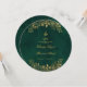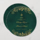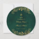 Cartões de Menus Redondos Islâmicos do Dourado Emerald Green Florals. Este cardápio redondo de casamento é realmente elegante! A frente tem um belo fundo verde esmeralda com delicados florais de ouro. A caligrafia é requintada, começando com 'Bismillah' e a frase árabe 'wa khalaqnakum azwaja' (que significa 'E nós criamos você em pares'), seguida dos nomes dos casais, da data do casamento e do local. O verso também é esmeralda verde, e ele exibe elegantemente 'O Menu' no topo. O cardápio em si é belamente apresentado na caligrafia dourada, listando todas as deliciosas iniciações, cursos principais e sobremesas. É um toque muito especial para sua celebração de casamento