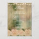 Um cartão de janto de casamento Rústico Elegante com fundo de madeira, rosas cor-de-rosa macio e uma corda de luzes. Este cartão de janto de casamento faz parte de um conjunto completo.