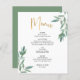 Placa de menu plana de folhagem verde Elegante Para itens correspondentes, siga o link: https://www.zazzle.com/collections/elegant_green_foliage_collection_a162-119317613690062708 ou simplesmente escreva A162 na caixa de pesquisa desta loja (compro). Se precisar de personalização, entre em contato comigo szdesigns2021@gmail.com