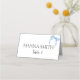Cartões de lugar dobrados com laço azul-acinzentado pintado à mão em aquarela. Perfeito para um chá de noiva temático "Ela está dando o nó".