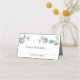 As impermeáveis de cor aquática eucalipto verde destacam este moderno cartão de lugar dobrado com sutil elegância. Este simples design inspirado na natureza inclui um modelo de texto que você pode personalizar com o texto desejado na frente e na parte traseira da placa. Estes cartões de lugar são uma boa escolha para recepções de casamento e grandes festas ou banquetes, assim como para encontros menores onde você quer um cartão de lugar para cada um dos seus convidados jantes. Um conjunto de produtos de papelaria correspondentes está disponível neste design.
