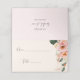 Este cartão de lugar de mesa dobrado moderno e boêmio para chá de noiva com tema floral rosa e pêssego e champanhe é perfeito para qualquer pessoa que deseje realizar um chá de noiva comemorativo brindando à noiva.