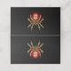 Aranha mecânica, com pá-pá de ouro, engrenagens de latão e uma lâmpada de vidro vermelha sobre fundo preto. Estilo Steampunk.