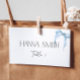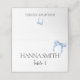 Cartões de lugar dobrados com arco de aquarela azul desbotado pintado à mão. Perfeito para um chá de noiva temático "Ela está amarrando o nó".