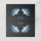 Cartão De Mesa Asas Anjos Azuis Brilhantes em fundo preto
