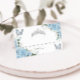 Projetados para combinar com nossa coleção Sky Blue Floral Silver, estes cartões de lugar elegantes apresentam rosas azul celeste suaves aquareladas, borboletas e uma coroa prateada de princesa. Clique no botão Editar Usando Ferramentas de Design para editar ainda mais o texto, a redação, o estilo da fonte, o tamanho da fonte, a cor da fonte, adicionar mais texto, mover ou remover algumas imagens. As borboletas e a coroa são móveis, redimensionáveis, multiplicáveis e removíveis. Personalize-os para se adequar à sua ocasião.