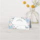 Concebido para combinar com a nossa coleção de flores Baby Blue e Powder Pink para Quinceañera, este cartão de lugar elegante apresenta rosas baby blue e powder pink suaves aquareladas, borboletas azuis e rosadas e uma coroa de princesa prateada. (c) The Happy Cat Studio