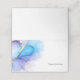 Elegant wedding place card featuring a blue, purple, and gold abstract heart design with soft watercolor and alcohol ink texture.