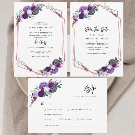 Purple Floral Rose Gold Geometric Wedding SuiteCriado por S A Holmes