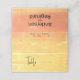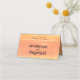 Placa de Mesa de Recepção de Padrão Melão Feliz e Amarelo Casual de Verão, com modelo de texto dentro. Celebre suas núpcias de verão casuais, renovação de votos ou outra ocasião com esta design de padrão casual de cor amarela e pêssego rosado feliz. Esta design funciona para todas as idades e gêneros, e é excelente para primavera e verão. Design criou de uma fotografia original tirada pelo designer de um pôr do sol em San Diego, Califórnia, e então digitalmente texturizada. Descrição do design: o design está em quatro partes. A parte superior é cor rosada de pêssego, a segunda parte vai do cor rosado para o amarelo médio, e as duas seções inferiores são do amarelo médio. As seções são divididas por linhas rugosas que são mais leves que as cores principais. O design inteiro tem pontos que o fazem parecer angustiado, como se as cores fossem casualmente e incompletamente aplicadas. O mesmo design de cor subjacente no dentro e fora da tenda da placa. Descrição do texto: o texto externo frontal tem uma linha longa no topo onde você pode escrever no nome do seu convidado. Abaixo está uma modelo para a palavra "Mesa", seguida por uma linha curta onde você escreve no número da tabela. Os fundos externos têm a data do casamento e os nomes dos dois cônjuges. A compreensão da tenda do cartão tem um modelo para três linhas de texto para sua mensagem especial para seus convidados. Se quiser um com vazio por baixo, veja o outro design na coleção.