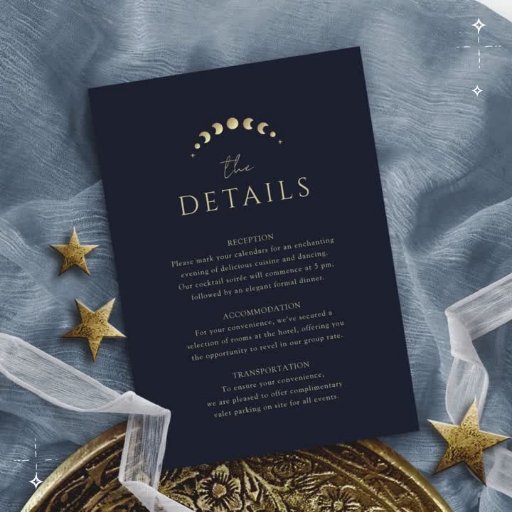 Mande seus convidados de casamento para seus assentos com o "Cartão Azul de Local de Casamento Celestial Dourado", contra um pano de fundo azul atraente. A lua crescente e as estrelas, aliadas às elegantes e simples iniciais personalizáveis do casal, tornam-se marcadores celestes. As fases da lua subtilmente incorporadas no design simbolizam a posição única de cada convidado, criando um assento celeste.