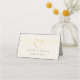 Cartão de lugar de casamento elegante, simples, minimalista, em champagne dourado com coração de corda e letra de caligrafia moderna.