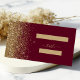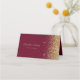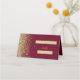 Este elegante e moderno cartão de lugar reservado para mesa de casamento apresenta um design brilhante de falso ouro ao longo de uma borda sobre um fundo vermelho de burgundy. A frente do cartão fornece espaço para o nome do convidado e o número da tabela na forma de retângulos dourados sobre um fundo. A palavra "mesa" aparece em um guião de escrita manual dourada com pinceladas antes e depois. Personalize a parte de trás do cartão com os nomes da noiva e do noivo em um guião de escrita dourada e a data de casamento abaixo em sans serif font.