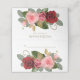 Aqui está um cartão de casamento dobrado e bonito que apresenta um buquê espantoso de rosas vermelhas e cor-de-rosa aninhadas entre folhas verdes e espirais de ouro. A imagem é impressa tanto na frente quanto na parte traseira da placa, com vários campos de texto personalizados em ouro. A parte traseira da placa é preta e sólida. Este cartão combina com as Chamadas de Casamento de Rosa Sparkle Stripe e outros produtos de casamento na nossa loja.