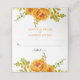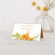 Cartão De Mesa Casamento de flores e folhas de aquarela laranja