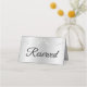 Estas belas cartas de lugar são uma forma excelente de deixar seus convidados saberem quais lugares são reservados para familiares e outros convidados especiais. Projetado como parte de nossa suíte de casamento elegante de folha de prata. Possui um design simples, mas elegante, com texto preto sobre fundo prateado com borda floral de folha de papel prateada.