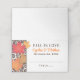O design de cartão de acompanhamento / lugar de casamento temático "Se Apaixonar" inclui uma borda de espirais e folhas de bordo em cores ricas de outono, incluindo laranja, vermelho, cobre, dourado, marrom chocolate e marfim. Personalize o texto do monograma personalizado com os nomes da noiva e do noivo + data do casamento.