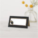 Cartão de casamento dobrado em preto e branco, com sotaques dourados falsos e gráficos de futebol preto e dourado. Personalize a frente do cartão manualmente para cada convidado na sua recepção.