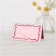 Adicione um toque de na moda à sua recepção de casamento ou evento especial com os cartões de casamento do Modern Wavy Frame! O design retrovisor exibe "Mesa" em um script vermelho manuscrito com espaço para você escrever o nome do convidado e o número da tabela. Uma borda ondulada vermelha circunda a design contrastando com um fundo rosa claro. A parte de trás do cartão de lugar dobrado apresenta seus nomes e data de casamento em letras vermelho em negrito.