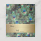 Recepção de casamento de placas de mesa impressas personalizadas. Pena de pavão elegante e refinada em cores ricas e saturadas do azul real, ouro de cobre e verde esmeralda teal. O pavão é um pássaro imponente com penas ornamentais e faz uma bela exibição para um casamento de verão ou qualquer ocasião Gradientes de ouro com aparência metalílica adicionam um toque de glamour e refinamento.