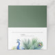 Cartões de casamento do tema Pavock com um belo pavão, penas e folhas tropicais.