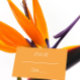 Cartões de lugar cor laranja de estilo simples para o seu planejamento de casamento que apresentam as iniciais da noiva e do noivo em um script branco e estilizado junto com o espaço para nome de convidado e número da tabela. Personalize o cartão de lugar editando e substituindo as iniciais da noiva e do noivo. Selecione o estilo de papel da placa de lugar. Projetado para complementar a coleção de casamentos do Pássaro Tropical de Paraíso.