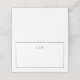 Simples cartão de casamento com um design elegante e eterno com seu monograma de duas letras e uma fina borda em preto sobre um fundo branco. O cartão é vazio para que você possa escrever manualmente os nomes de seus convidados. A cor da fonte pode ser alterada para qualquer cor na ferramenta de edição de design. Um design limpo e clássico perfeito para um casal que quer um cartão de lugar tradicional com um toque moderno.