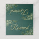 Essas placas de lugar elegantes são projetadas para que seus hóspedes saibam quais lugares são reservados para familiares e outros hóspedes especiais. Eles apresentam um esmagador fundo verde esmeralda com sotaques florais de folhas de ouro friáveis e ornamentados nos cantos, e letras douradas lendo "reservado". Perfeito para casamentos ou qualquer outra ocasião especial.