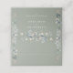 Este cartão de lugar dobrado para casamento floral em cascata verde salvia elegante pode ser personalizado com seus nomes e data especial no verso. Criado por Thisisnotme©