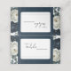 Cartão De Mesa Casamento Floral Moderno Azul Escuro e Branco