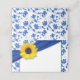 Flor de girassol amarelo e azul real floral e simulado casamento de fita ou outros cartões de lugar especiais. Um bonito design de cartão de casamento floral azul e amarelo de girassol.