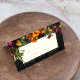 Elegante rústico número da mesa de casamento floral do país com outono ferrugem borrifada de laranja e botânicos verdes sobre um fundo de madeira marrom-escura com luzes de cordas. ++++++++++++++++ Ideal para jardins no quintal externo outono no quintal rústico casamentos nas fazendas.