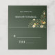 Um cartão de lugar elegante de mesa verde, que pode ser facilmente personalizado com os detalhes do seu convidado. Os nomes da noiva e do noivo também podem ser facilmente trocados para o bem. O próprio design apresenta um tema de jardim de plantas e vinhas florais no canto. Esta é parte de uma suíte de casamento maior que inclui convite correspondente, envelopes, anúncios, postais, salvar a data e muito mais, que você pode ver aqui: https://www.zazzle.com/collections/green_floral_wedding-119833848666747695