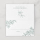 Um cartão de casamento floral elegante, com flores verdes, esboçadas e folhas nos cantos de fundo branco. Personalize os cartões de casamento botânicos com os seus nomes e data de casamento no verso em caracteres verdes clássicos. Projetado para coordenar com a nossa coleção de casamento Floral.