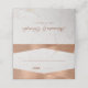 Um cartão de lugar para casamento para um casamento muito moderno, combina várias tendências atuais de casamento: metálico, mármore, geométrico e fontes especiais.