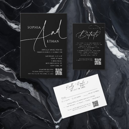 Delicate Calligraphy Elegant Black Wedding Criado por Bruno Crispin