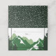 Placa de escolta em estilo de barraca dobrada em casamento no inverno nas montanhas verdes. Este design de casamento apresenta uma cordilheira através de coníferas e seu texto. O verso inclui um padrão de bolinhas brancas sobre fundo verde. No verso e na dentro há um padrão de bolinhas verde e branco.