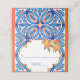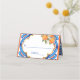 Ela encontrou seus cartões de lugar do chá de noiva Main Squeeze azul laranja, azulejos Majjolica espanhóis mediterrâneos um monte de laranjas com escrita moderna casual, agradável para cartões de lugar de funções ao ar livre de verão