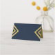 Chic elegante cartão de tenda azul com um design de ouro falso geométrico de chevron. É um cartão de lugar versátil que você pode usar para qualquer evento como casamentos, festas ou até reuniões e conferências. Este cartão é fácil de personalizar; para adicionar texto, clique no botão "Personalizar". *Observe que a Marca d'água Zazzle que aparece na visualização de zoom não aparecerá no produto impresso final © Rosewood e Citrus