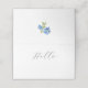 Mínimo, chic e simples cartão dobrado branco. Este cartão de mesa de casamento, apresenta uma fonte moderna, uma linha para os nomes de hóspedes, uma ilustração de hydrangea floral na parte de trás do cartão, bem como uma mensagem 'obrigado você' na dentro do cartão.