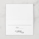 Uma cinza e um cartão de mesa brancos adoráveis, cartão de lugar, cartão de escolta com um lugar para o seu nome de hóspedes, número de mesa e um design giratório florescente no fundo.
