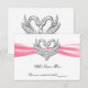 Cartão de Mesa Cisnes de Prata com Laço Rosa