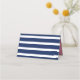 Placa de tenda de listras azuis com bonito cor-de-água rosa na frente. É um cartão de lugar versátil que você pode usar para qualquer evento como casamentos, festas, chás de fraldas, chás de panela ou até mesmo para suas reuniões e conferências. Este cartão é fácil de personalizar; para adicionar texto, clique no botão "Personalizar". *Observe que a Marca d'água Zazzle que aparece na visualização de zoom não aparecerá no produto impresso final © Rosewood e Citrus