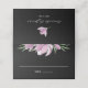 Uma magnólia roxa floresce sobre fundo preto, use uma caneta branca para preencher os nomes e os números das mesas dos seus convidados. Seus nomes e data de casamento nas costas. CORRESPONDENTE A ITENS na nossa loja.