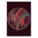 Eleve seu evento com este cartão de mesa ousado e dramático, apresentando um design circular listrado que irrompe em tons de arco-íris saturados, cúpulas surreais e árvores caprichosas - tudo isso contra um fundo rico e profundo burgundy. A ilusão óptica da faixa atrai o olhar enquanto as cores vivas fazem cada mesa se destacar, seja em um casamento sofisticado, celebração cultural, jantar de gala ou banquete festivo de feriado.