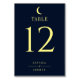 Este design apresenta uma elegante carta de mesa celestial personalizada para casamento com símbolos clássicos de ouro da lua crescente com cor azul marinho do céu noturno. Este cartão é facilmente editável. Se precisar de ajuda para a personalização desta placa ou se precisar de mais produtos correspondentes para esta coleção, envie-me gentilmente através do Zazzle.