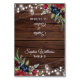 Cartão de Mesa de Casamento Floral Burgundy em Madeira Rústica