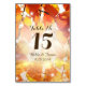 O outono deixa a placa de Mesa do Casamento outono. Totalmente personalizável, clique no botão personalizar para adicionar, excluir ou alterar o tamanho do texto e/ou a cor de seu gosto. Todos os convites de casamento estão disponíveis com vários acessórios correspondentes.