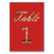 Elegante Tipografia Chic Sparparte Dourada Olhe Mesa Card Festa de casamento ou seu Evento, Tabela de Convidados Número 1, você pode alterar a cor vermelha de fundo